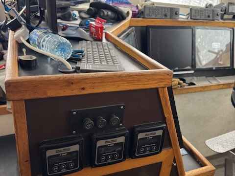 2 radars navnet ,simrad pilot, Hondex & maxsea plotter . 2 VHFs , gps‘s ,